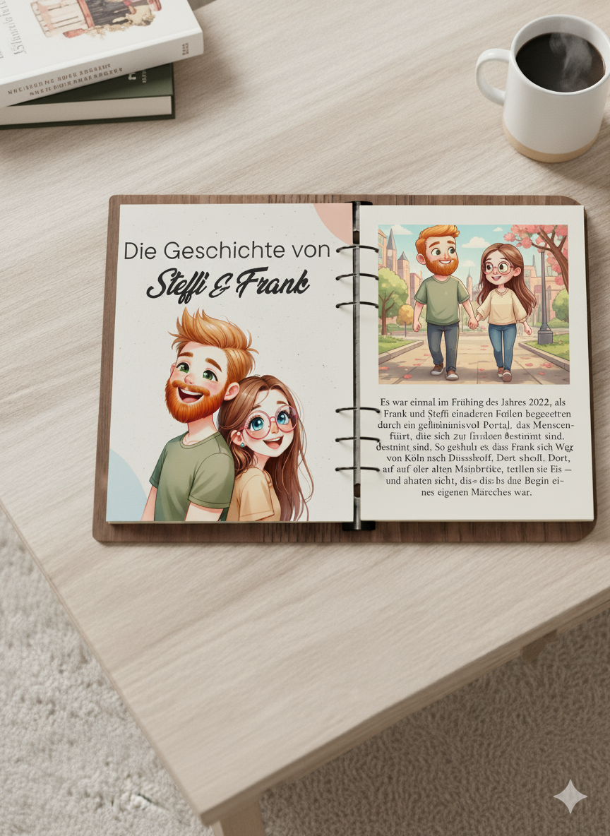 With us, you can create a gift that not only looks beautiful—but also tells your story. You upload one or more images, choose a style, customize everything to your liking, and instantly see an emotional preview. Whether you're creating an anniversary gift or looking for a personalized gift for your girlfriend or boyfriend: With DreamyTales, you can turn memories into something personal—and a moment into a truly heartfelt gift.
