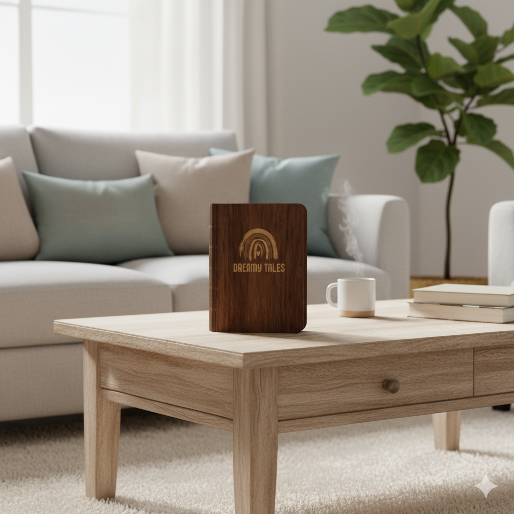 Our covers made from fine walnut wood transform your story into a design piece for life. Each cover is crafted from sustainable, real wood – with a tactile feel and warmth you can feel. The grain is unique in each copy, making your book one of a kind. Thanks to the sophisticated design, it not only fits perfectly on your bookshelf but also makes a stylish addition to your living room.